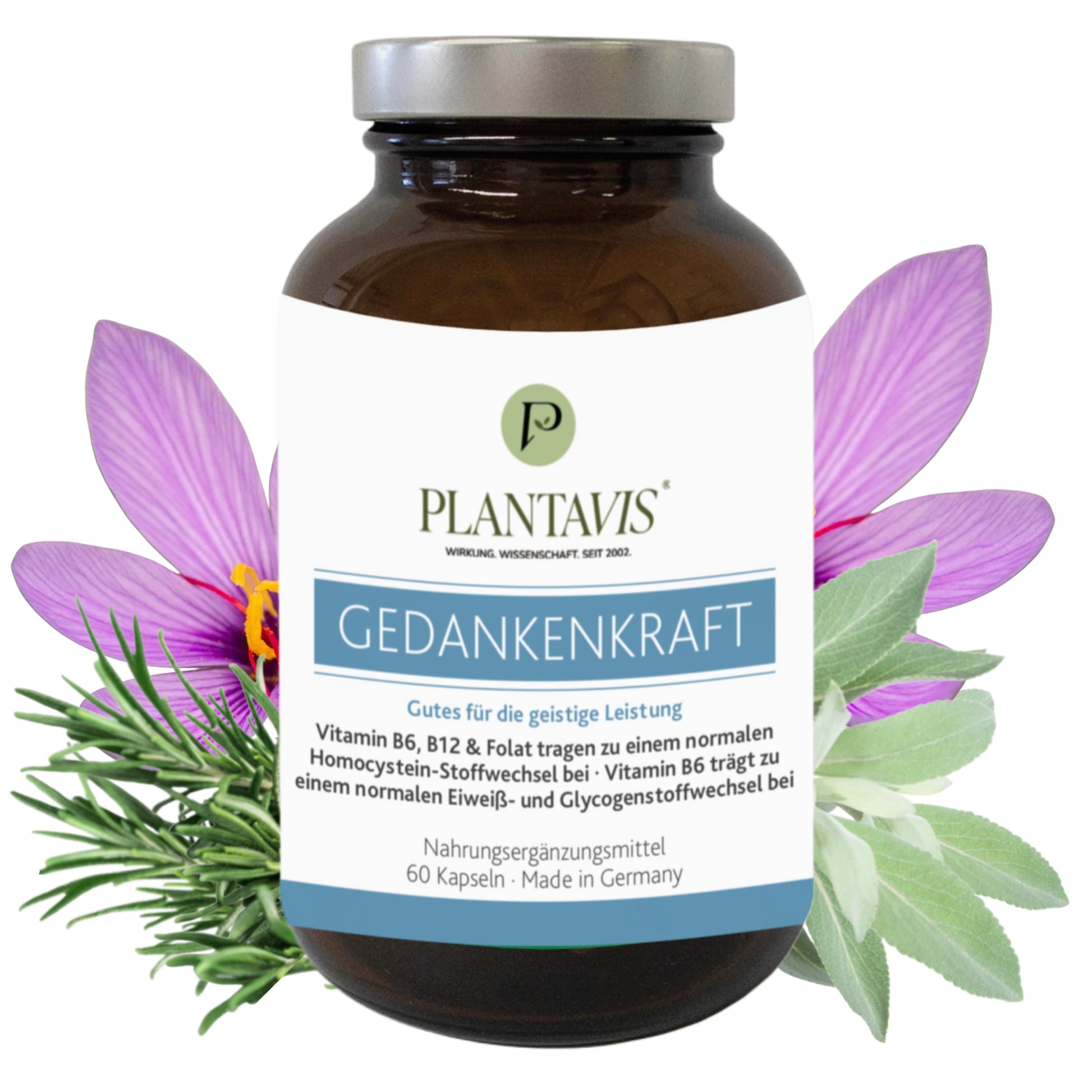 Die GedankenKraft Kapseln sind ein modernes Nahrungsergänzungsmittel mit sorgfältig ausgewählten natürlichen Pflanzenextrakten und Vitaminen, die zur Unterstützung von Gehirn, Nerven und kognitiver Gesundheit beitragen können.