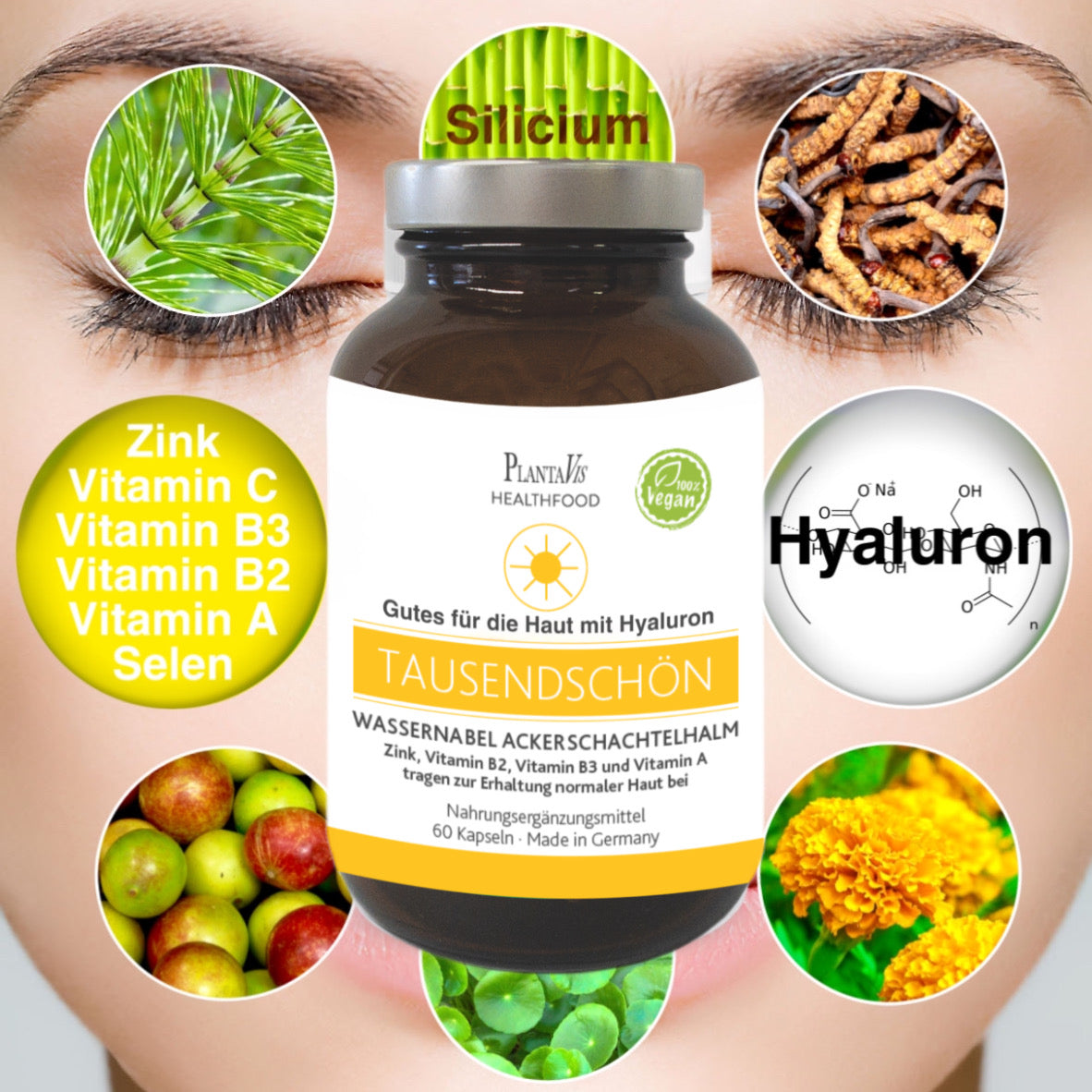 Wassernabel Ackerschachtelhalm Kapseln (TausendSchön) mit Hyaluronsäure und dem integrierten, exklusiven Zellschutz Komplex von PlantaVis